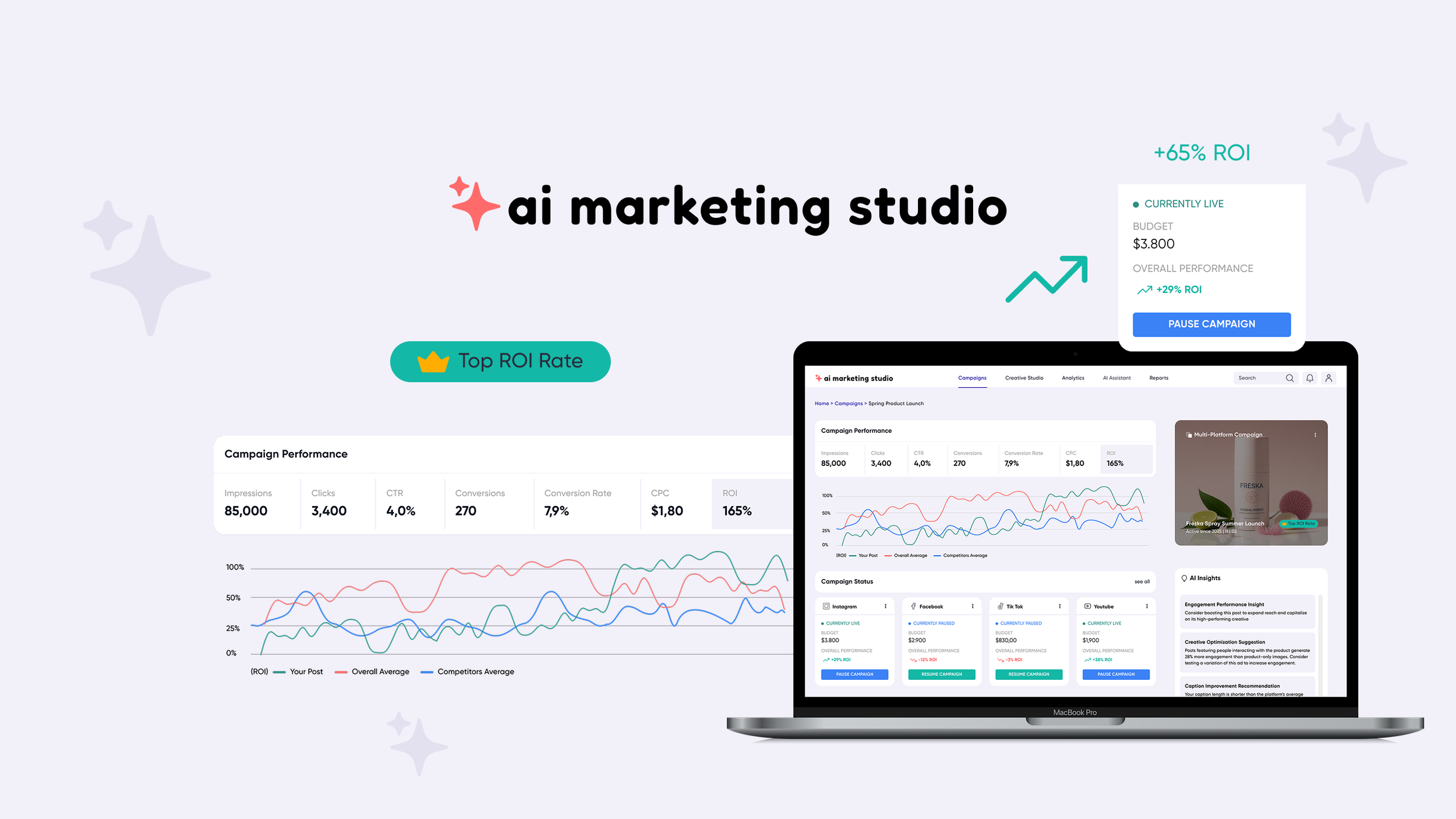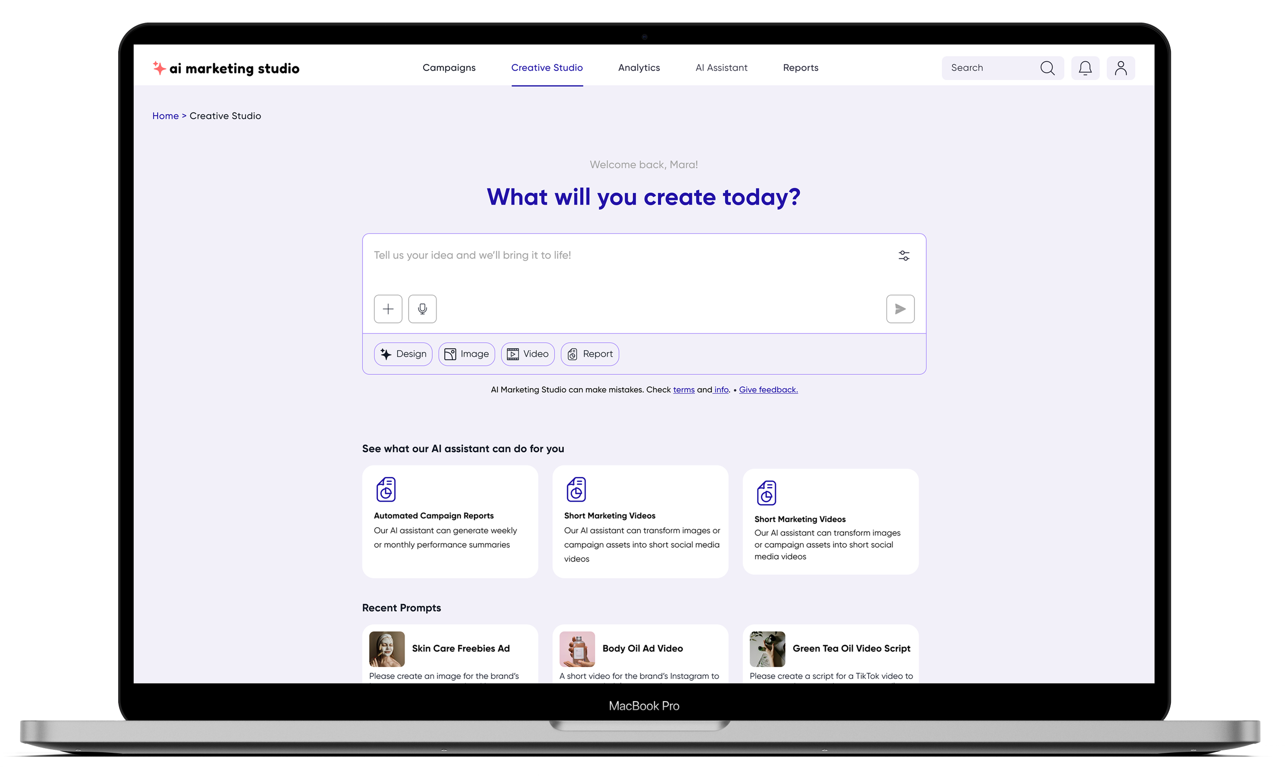 The platform uses artificial intelligence to transform complex marketing data into clear insights and creative recommendations. From generating ad copy and social media captions to identifying high-performing audiences and suggesting campaign improvements, AI Marketing Studio helps teams move faster, make smarter decisions, and scale their marketing efforts with confidence.