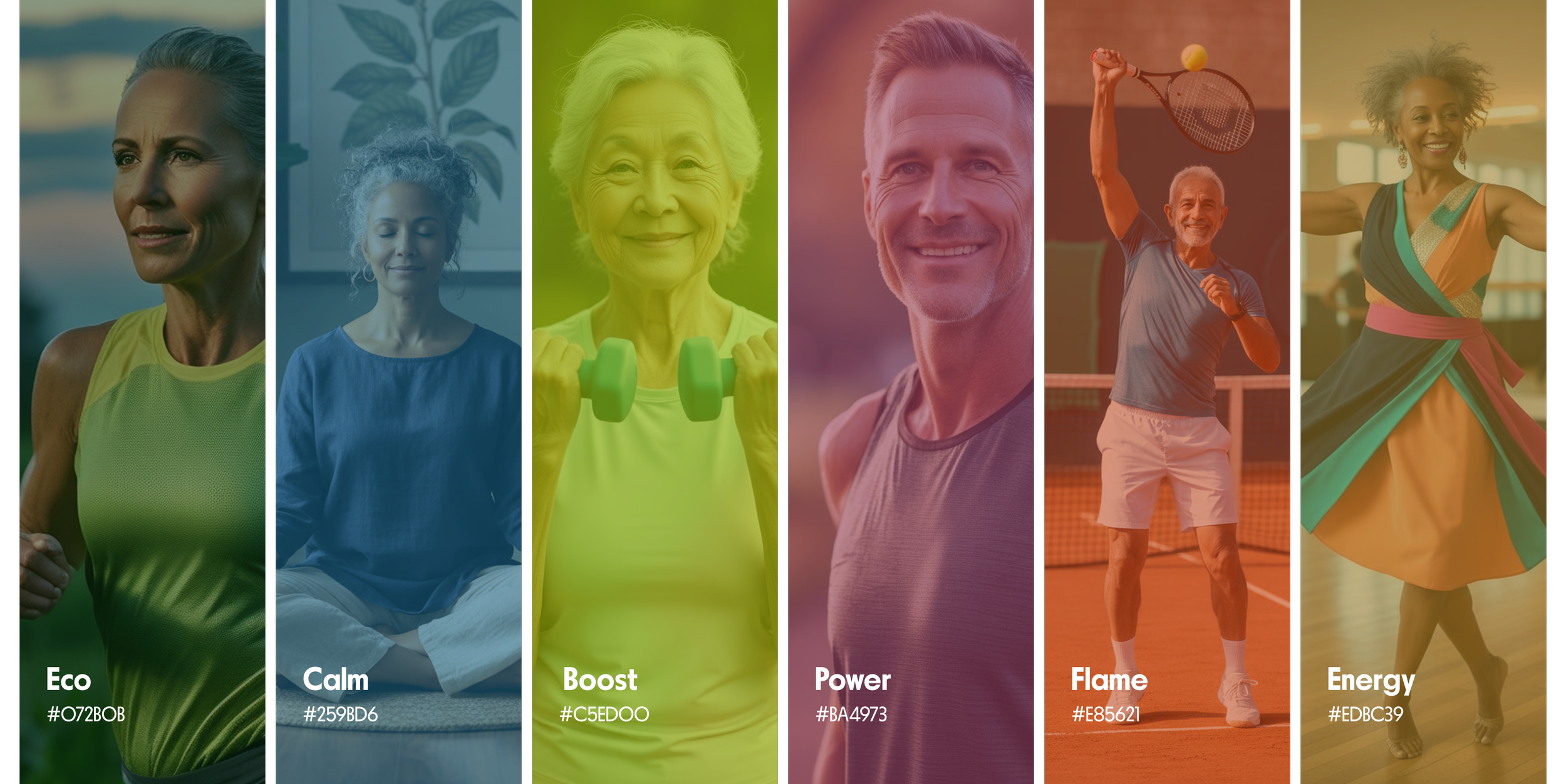 This philosophy is expressed through a bold yet human visual identity and a product experience designed with empathy. The logo’s infinity symbol, formed by the double “o”, represents continuous movement and growth, while vibrant colors, curved forms and strong typography bring energy and warmth without overwhelming the user. The interface follows a minimal, text-first approach that prioritizes clarity, accessibility and ease of use, reducing cognitive load and making interactions intuitive. Together, the branding, art direction and product design create a cohesive system that supports a 50+ audience in building sustainable habits through connection, simplicity and joy.