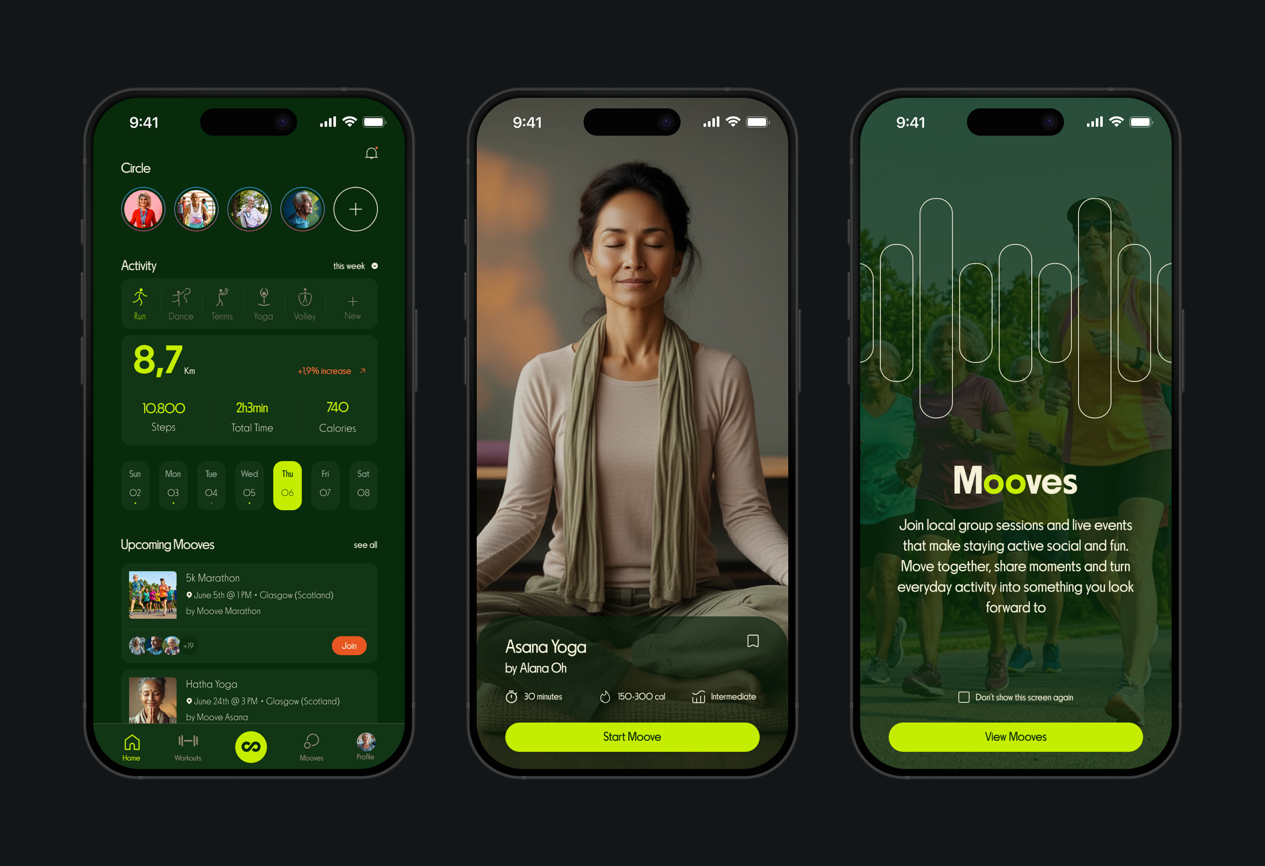 Moove turns staying active into a joyful, social experience — built on consistency and connection, not numbers and pressure