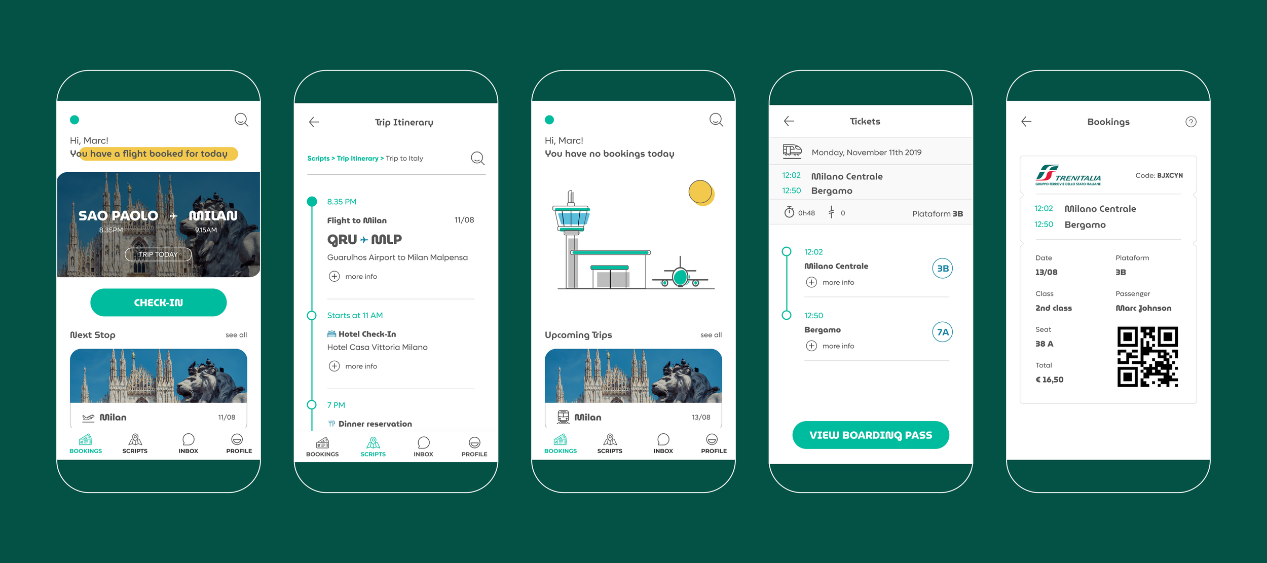The app consolidates travel logistics by combining manual planning, automatic integrations, and QR scanning, creating a single, intuitive overview of the entire journey.