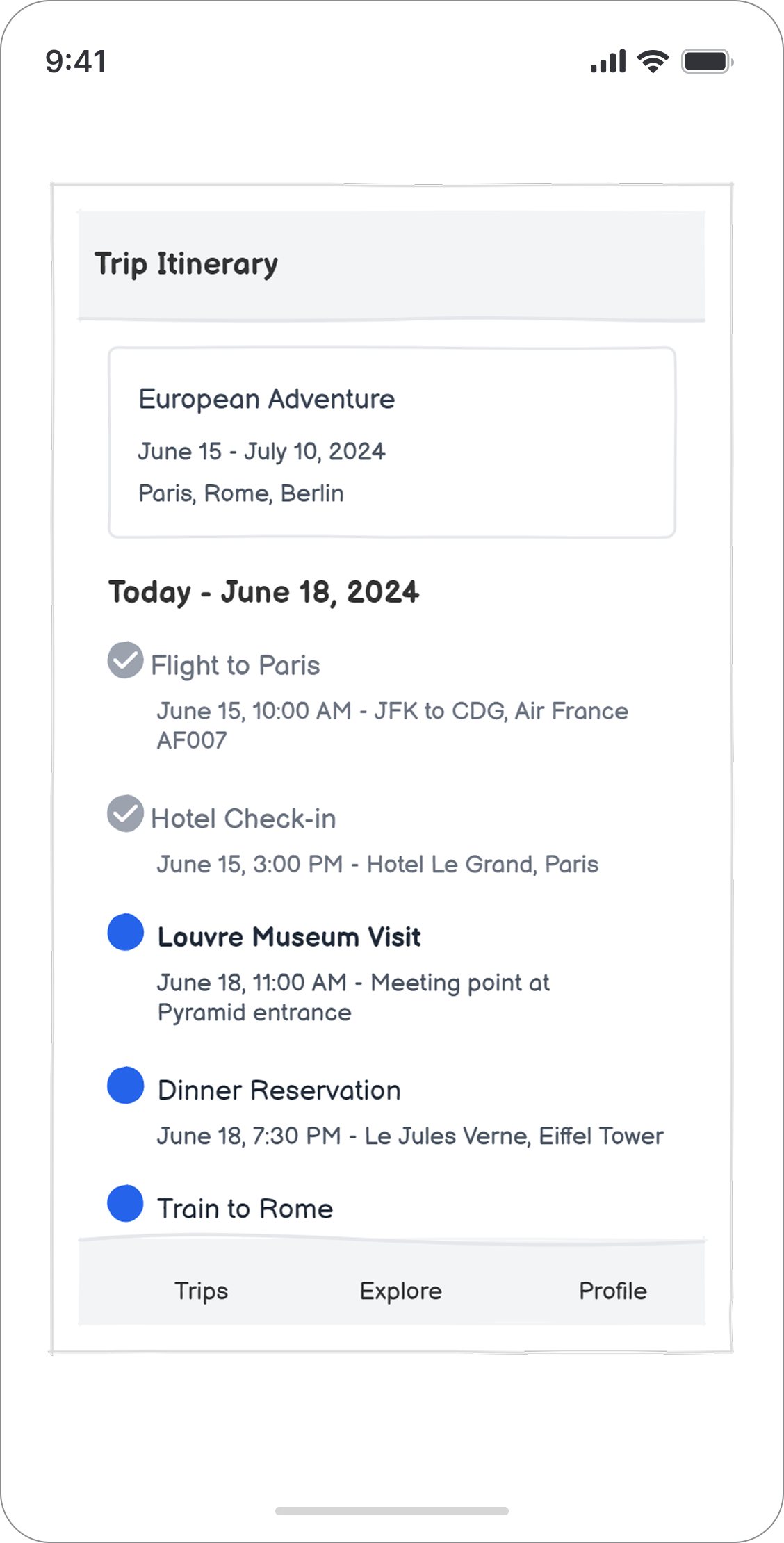 This group includes frequent travelers, digital nomads, business professionals, and detail-oriented vacation planners who often juggle flights, accommodations, transportation and activities. Because they already rely on tools such as planners, calendar apps, and itinerary trackers, they are comfortable using digital systems to stay organized. A timeline-based travel organizer naturally fits into their habits by consolidating travel details into a clear, chronological view of the entire journey.